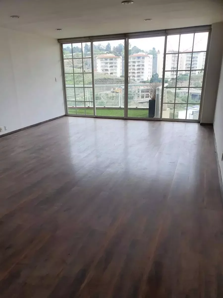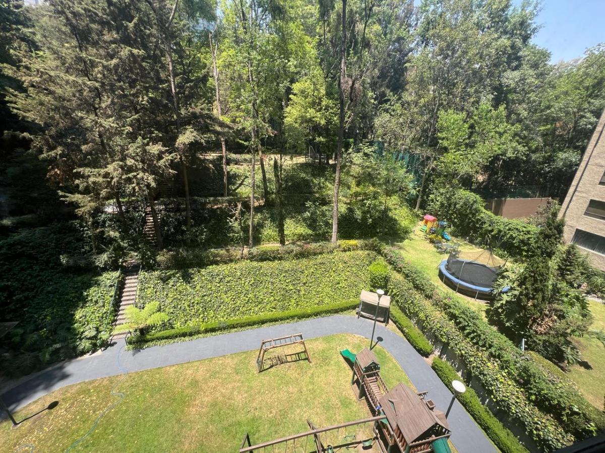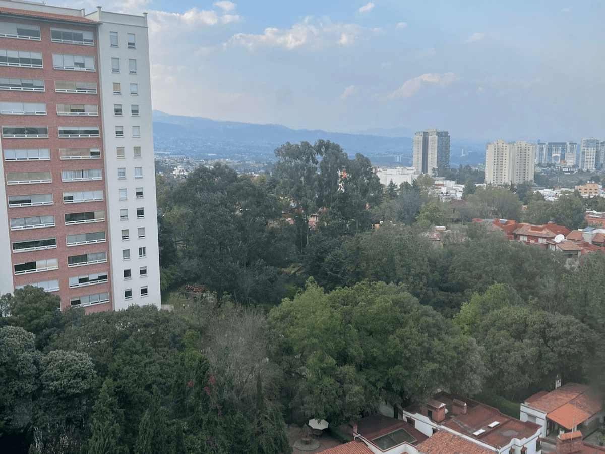 Departamento de 153 m² en condominio rodeado de vegetación y áreas abiertas. Cuenta con 3 recámaras (la principal con vestidor y baño; las otras dos comparten baño completo), 2.5 baños, estancia sala-comedor, cocina integral, área de lavado, bodega y 2 cajones de estacionamiento techados. Vista panorámica, excelente iluminación y ubicación estratégica a 5 min de Interlomas y 2 min de Cuajimalpa.