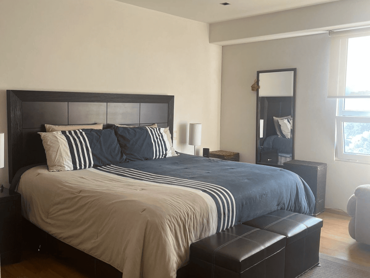Departamento en venta en Atrio Interlomas de 105m2, estancia amplia y muy iluminada, dos recámaras, la principal con walking closet y baño, un baño completo adicional.