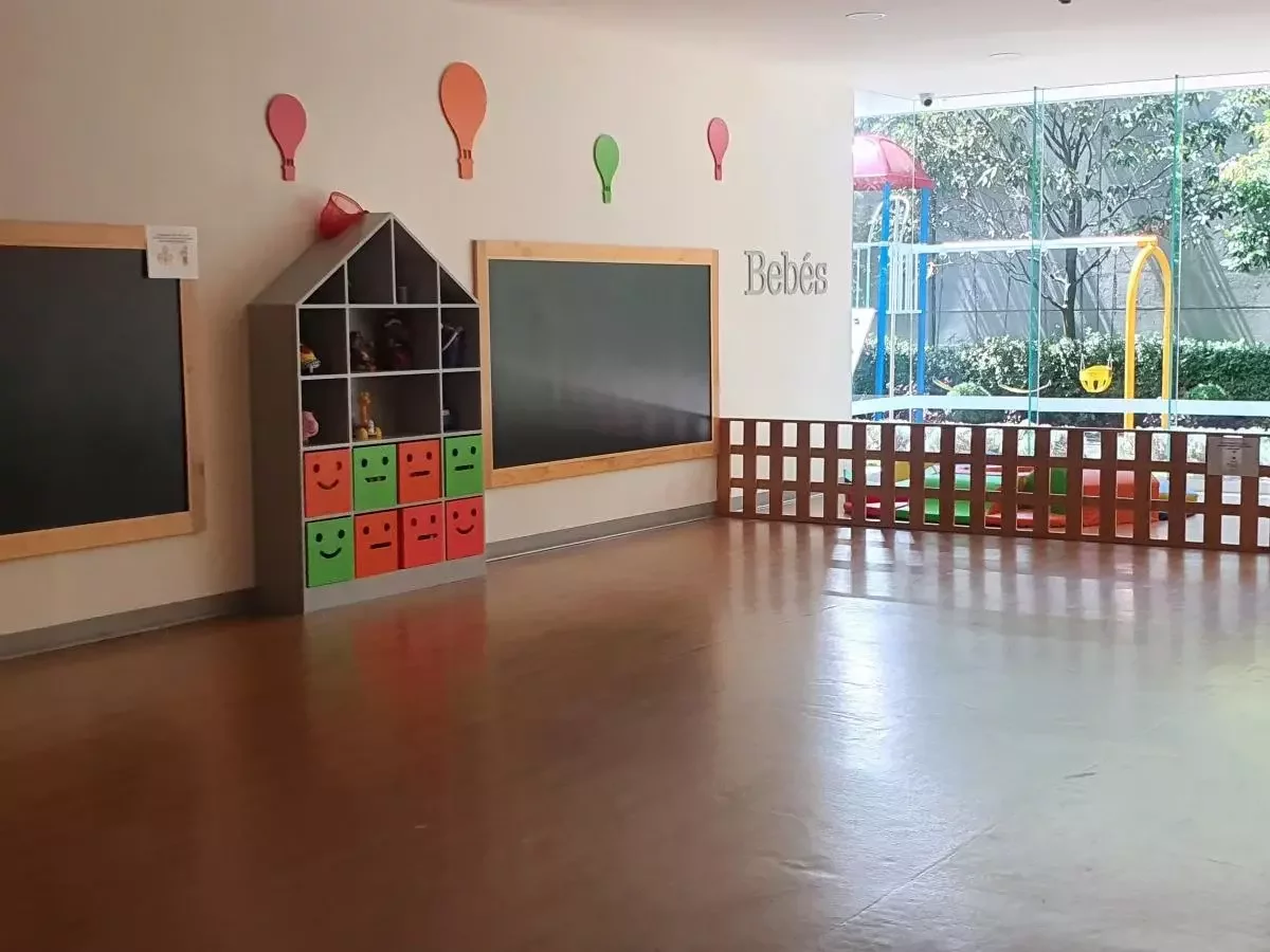 Amenidades: Alberca semiolímpica techada, jacuzzi y chapoteadero. Gimnasio, área de spa y vestidores, salón de eventos, ludoteca, salón de usos múltiples, sala para adultos, jardín de 4000m2 aprox, juegos infantiles. Vigilancia 24 hrs. CCTV, estacionamiento de visitas.