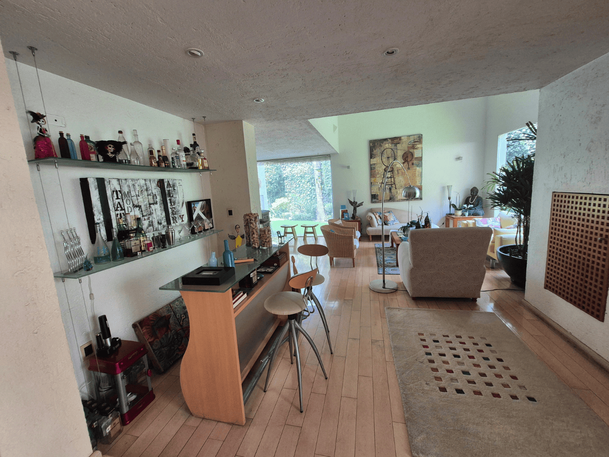 Con 1,290m2 de terreno y 1,125m2 de construcción, esta maravillosa casa rodeada de naturaleza y áreas verdes, ofrece lujo y confort a sus habitantes, dentro de un fraccionamiento con un estricto sistema de seguridad. Además cuenta con una ubicación inmejorable cerca de Interlomas, Santa Fe, Naucalpan y Bosques de las Lomas; con servicios de alta calidad cercanos como hospitales, centros comerciales, supermercados, escuelas y universidades como la Universidad Panamericana (nuevo plantel).