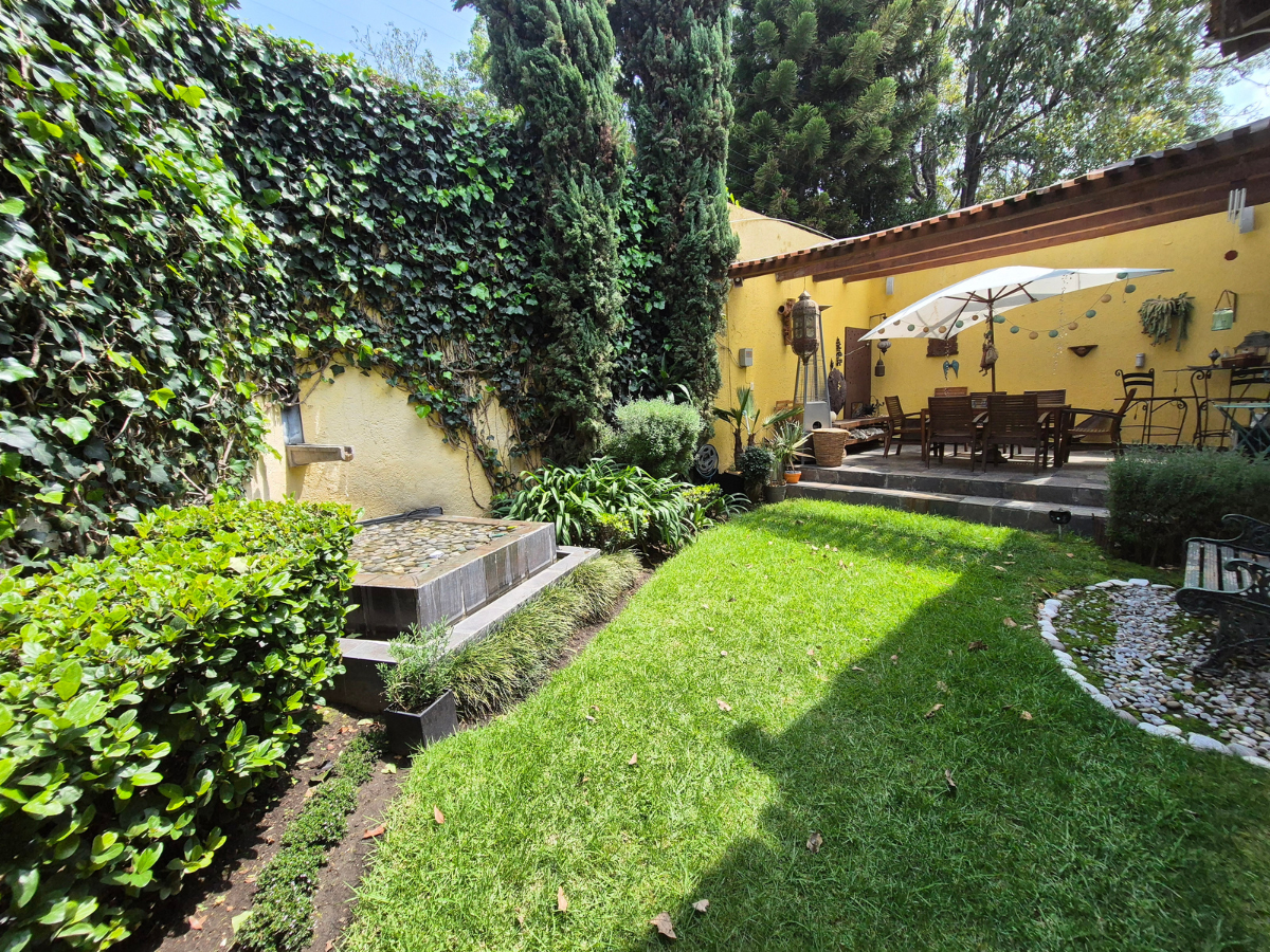 Casa en venta de 440 m² construidos sobre 392 m² de terreno, distribuida en 3 niveles. Cuenta con 3 recámaras (todas con baño completo y clósets, la principal con jacuzzi y doble lavabo), medio baño de visitas, sala con chimenea, comedor iluminado con acceso a terraza techada y jardín, cocina abierta equipada con alacena y desayunador, cava, cuarto de TV, clóset de blancos y cuarto de servicio con baño.